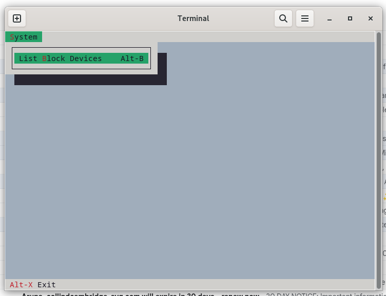 simple Free Vision program that runs lsblk -S and displays the output in a